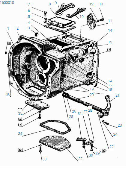 Каталог корпусу зчеплення МТЗ 70-1600010 (схема список запчастин, 36 позицій)