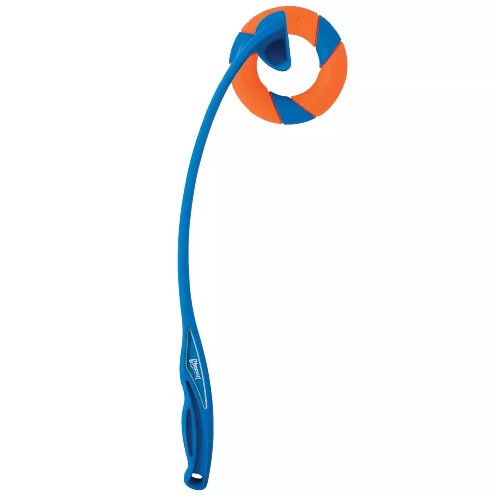 Іграшка CHUCKIT! RING CHASER LAUNCHER іграшка катапульта з кільцем для собак, дозволяє кинути кільце набагато далі. Покращує гру, підвищуючи швидкість і дистанцію метання, що стимулює собаку бігти далі і швидше. Тренуйте собаку, не втомлюючись, задовольнивши її природний інстинкт.