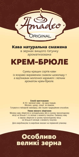 Суміш кращих сортів кави з яскраво вираженим смаком шоколаду та відтінками молочної карамелі і легким ароматом крем брюле.