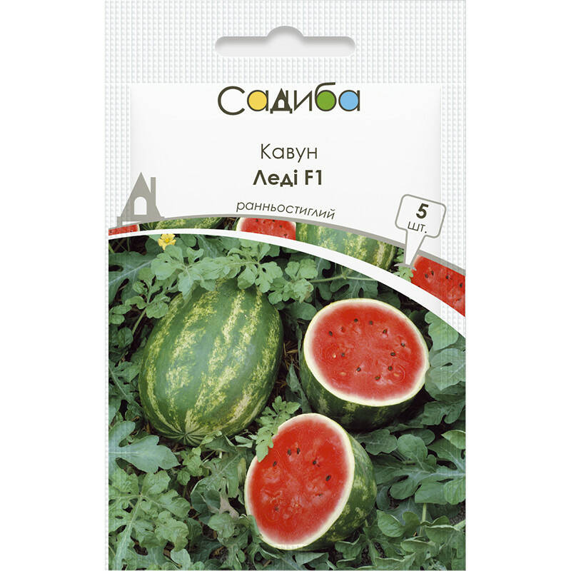 Кавун Леді - це гібрид нідерландських селекціонерів, який цінується аграріями за невибагливість до кліматичних умов - може зав'язуватися навіть в прохолодну погоду. Насіння краще висаджувати в торф'яні горщики, щоб уникнути висихання і пошкодження кореня. Ділянки для висадки слід вибирати сонячні, відкриті, із супіщаним грунтом. Земля повинна бути досить прогріта, тому починати посадку треба в середині травня. Гібрид показує хорошу пристосованість до посушливого клімату, не розтріскується, активно чинить опір фузаріозу та іншим захворюванням. До 65-70 дня плоди набирають стиглість, досягаючи 6-12 кг. Шкірка у гібрида щільна, рівна, з широкими смугами жовтого забарвлення. Товщина її близько 2 см, що робить гібрид придатним для перевезення на далекі відстані. М'якоть червона, з дрібними насінням, солодка, без волокон і соковита.