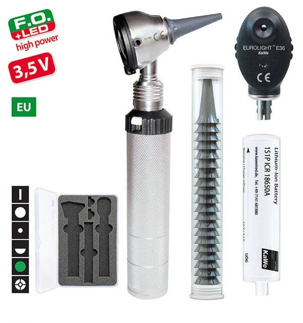 Набір KaWe EUROLIGHT F.O.30 LED / E36 (EC) призначений для огляду вух, очей, носових порожнин і гортані у тварин різних видів. Ідеальний вибір для ветеринарних клінік, мобільних лікарів та спеціалістів, які цінують якісну оптику і надійне LED-освітлення.