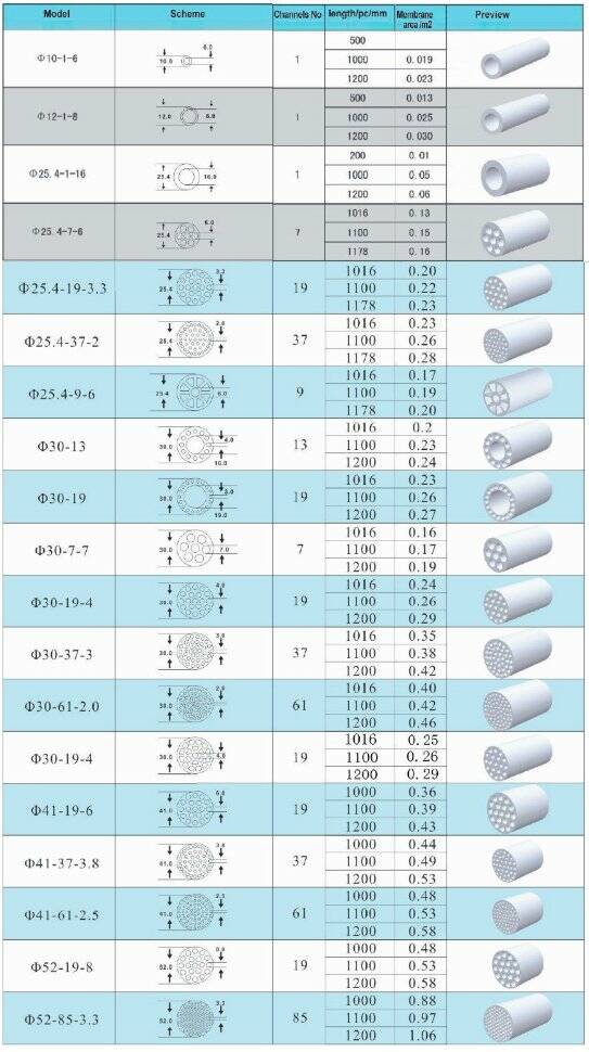 Керамічна MF мембрана СА1200-А3А100G ультрафільтрація, мікрофільтрація