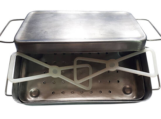 Дезінфекція інструментів проводиться в лотку. Лоток занурюється і виймається за допомогою двох захватів. Нагрівання стерилізатора вогневого (кип'ятильника) здійснюється за допомогою нагрівальних пристроїв (наприклад, електричної плитки).