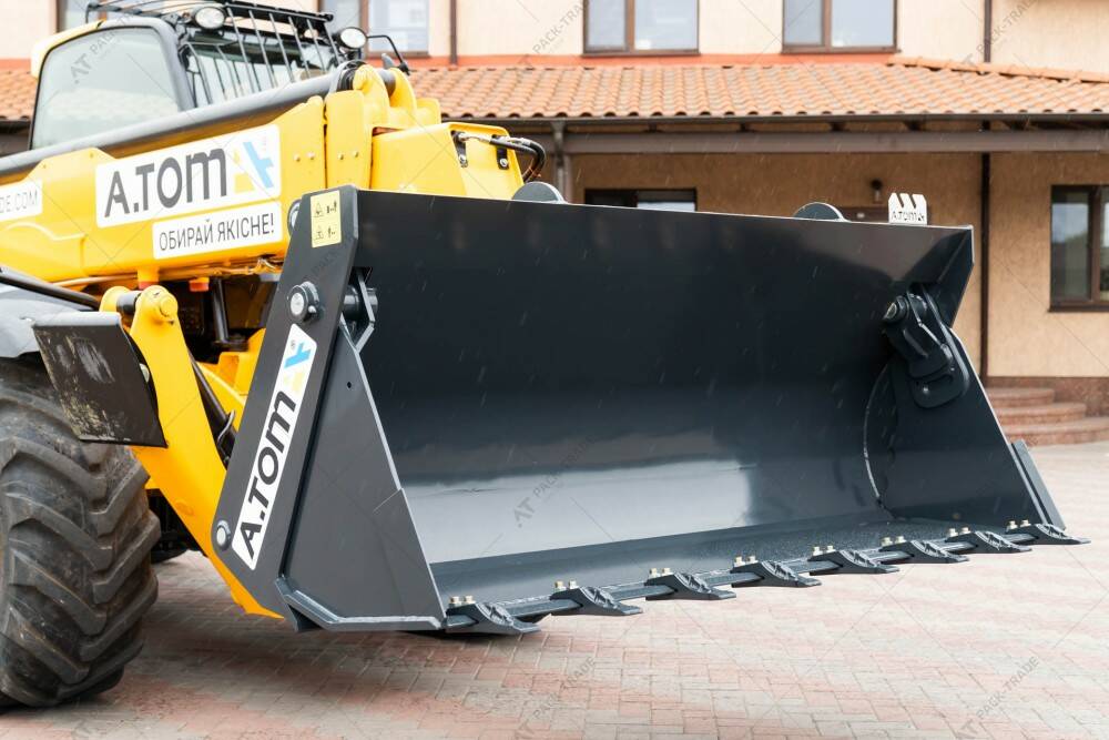 Ківш щелепний 4 в 1 на JCB, Bobcat, Volvo, Cat - А.ТОМ 0,9 м³ – універсальне навісне обладнання для телескопічних навантажувачів та екскаваторів-навантажувачів, що дозволяє вирішувати різноманітні завдання на робочому майданчику на всіх етапах робіт. Виготовлений з конструкційної сталі S355, що відрізняється високою стійкістю до значних навантажень. Функціональні можливості ковша: навантаження та транспортування ґрунту, планувальні роботи, захват і переміщення великогабаритних вантажів (камені, пні та ін.), землерийні роботи.