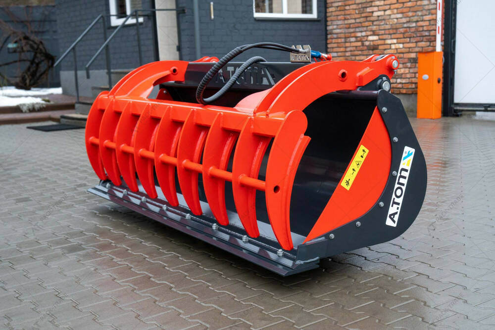 Ківш з захватом для навантажувача - А.ТОМ 1,0 м³ – це високоефективне та універсальне обладнання для будівельної, промислової та сільськогосподарської діяльності. Виготовлений із використанням високоякісної зносостійкої сталі, яка гарантує міцність та тривалу експлуатацію обладнання. Ківш має спеціально розташовані зуби, які допомагають утримувати та піднімати матеріали такі як ґрунт, пісок, каміння, сміття, дерев'яні бруси. Високий рівень універсальності ковша з захватом дозволяє використовувати його для різноманітних видів робіт, включаючи земляні робіти, операції із завантаження та розвантаження матеріалів, сортування сміття, будівництво доріг, садівництво та багато іншого.
