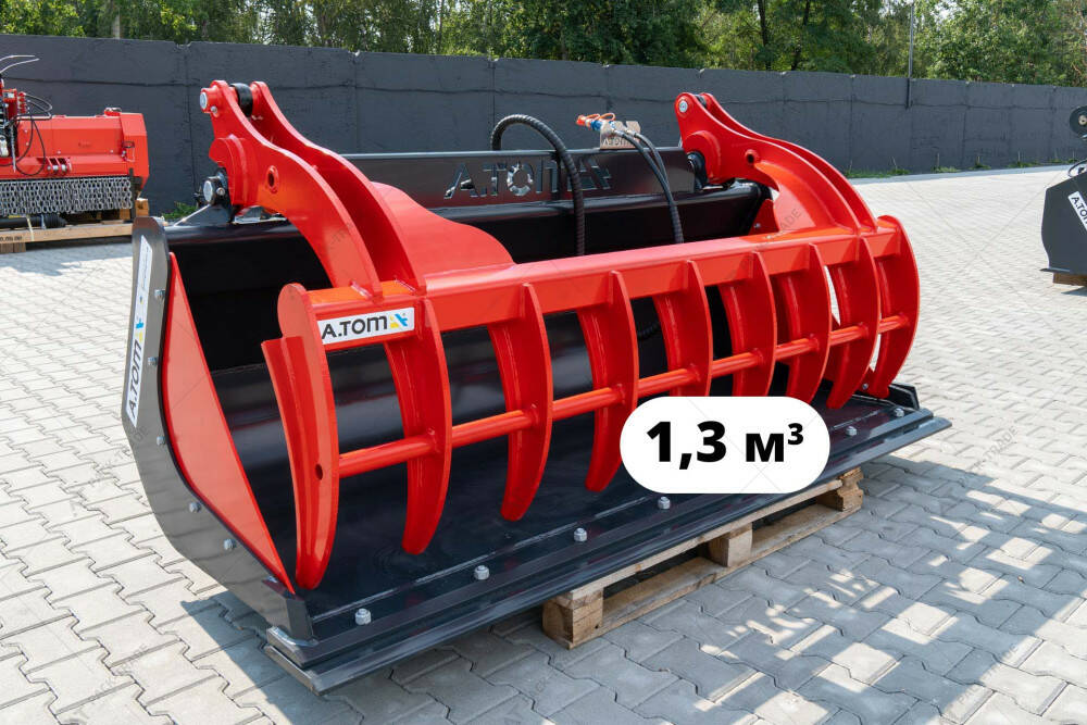 Ківш з захватом на навантажувач - А.ТОМ 1,3 м³ – це навісне обладнання, яке є незамінним в будівельній, промисловій та сільськогосподарській сферах для завантаження та транспортування різних матеріалів і вантажів.