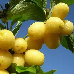 Кизил Янтарний – сорт середнього терміну дозрівання(15-20 серпня). Цей сорт кизилу має оригінальні плоди масою 3.5-4г, яскраво - жовтого кольору, в стиглому стані майже прозорі з тонкою шкіркою, через яку просвічується невелика кісточка . Крона дерева овально - пірамідальна, висотою до 2,0 - 2,2 метрів.