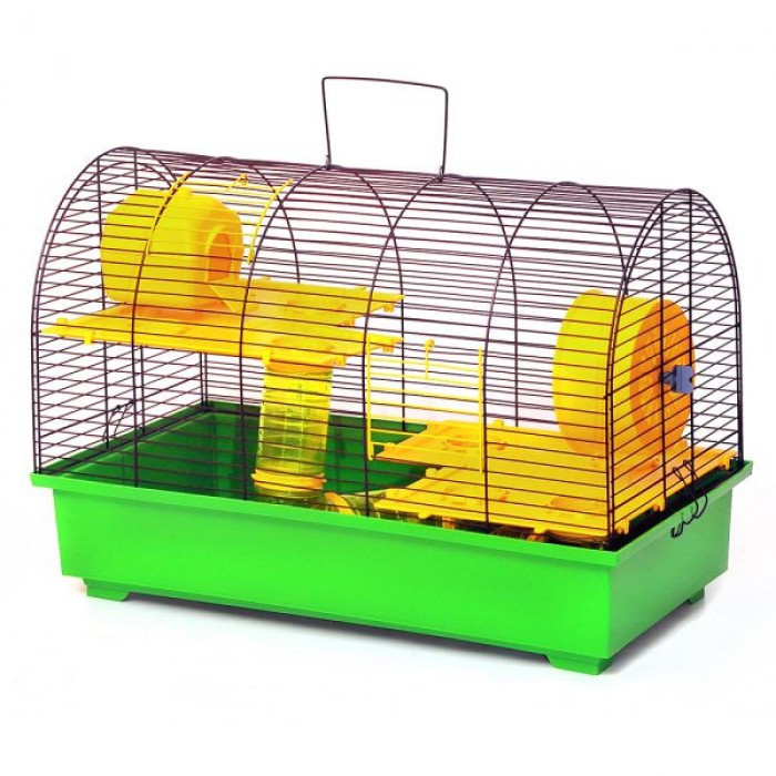 Велика клітка, буде комфортною домівкою для цілої зграї пухнастих бешкетників. Оснащена комплектом аксесуарів для розваг Ваших улюбленців: драбинка, тунелі з поличками, барабан, будиночок - все це можна комбінувати і міняти обстановку для руху і цікавого проведення часу її жителів. Наявність додаткових поверхів дає можливість хом'ячкам і щурики більше рухатися, при цьому відстань між ними абсолютно безпечна для тварин. Місце розташування дверей визначені таким чином, щоб забезпечити доступ до спритних її жителів. Піддон і аксесуари виготовлені з високоякісної пластмаси, а покриття металевої частини здійснюється з використанням сучасних європейських технологій.
