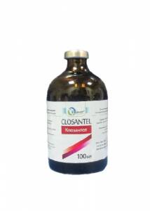Клозан 5% Опис Прозорий густий розчин жовтого кольору. Склад 1 мл препарату містить: клозантел 50 мг; Фармакологічні властивості ATCvet QP52A, протитрематодні, протинематодні і протицестодні ветеринарні препарати (QP52AG09, клозантел). Діюча речовина препарату - клозантел, протипаразитарний засіб, структурно похідний саліциланілідів, що має довготривалу дію на ендо- та ектопаразитів. Клозантел блокує процес фосфорилювання (утворення АТФ) в організмі паразитів через втручання у процеси транспортування електронів, змінюючи енергетичний метаболізм, що призводить до загибелі паразитів. Клозантел має широкий діапазон дії, ефективний у лікуванні паразитарних захворювань великої та дрібної рогатої худоби , викликаних нематодами, трематодами та членистоногими. Клозантел швидко всмоктується при пероральному або внутрішньом'язовому введенні. Максимальна концентрація його у крові овець досягається через 8-24 години після введення, у крові великої рогатої худоби - через 24-48 годин. Період напіввиведення становить приблизно 12-15 діб. Найбільше клозантал концентрується у легенях і нирках, а основним шляхом його метаболізму є відновлювальна деіонізація. Застосування Профілактика та лікування у великої та дрібної рогатої худоби наступних захворювань: велика рогата худоба: - фасціольоз (Fasciola hepatica, статевозрілі та пізні личинкові форми); - нематодози (дорослі та личинкові форми Bunostomum spp., Haemonchus сontortus, Haemonchus placei та Oesophagostomum radiatum); - гіподермози, спричинені личинками підшкірного овода Hypoderma spp.; вівці,кози: - фасціольоз (Fasciola hepatica, статевозрілі та пізні личинкові форми); - нематодози (дорослі та личинкові форми Bunostomum spp., Haemonchus сontortus, Haemonchus placei та Oesophagostomum radiatum, Chabertia ovina); - естроз (Oestrosis ovis). Дозування Препарат вводиться підшкірно одноразово у наступних дозах: 0,5 мл /10кг м.т., при фасціольозі 1 мл /10 кг м.т. Рекомендується при введенні препарату дозу розділити навпіл і ввести у різні місця. Протипоказання Не застосовувати одночасно з протипаразитарними хлорорганічними препаратами. Забороняється застосовувати дійним коровам та вагітним самкам у останній триместр вагітності. Застереження Забій тварин на м'ясо дозволяється через 28 діб, використання молока для харчування людей - через 14 діб після застосування препарату. На місці введення препарату можливе незначне запалення, яке зникає самостійно через дві - три доби після введення. Деякі породи великої рогатої худоби (шароле та її гібриди) є особливо чутливими до препарату, приблизно у 2 % тварин після введення препарату спостерігалися анафілактичні реакції. Форма випуску Флакони склянні по 10, 50, 100 та 250 мл. Зберігання Зберігати у сухому прохолодному, захищеному від світла місці за температури від 5 до 25°С. Термін придатності - 2 роки з дати виготовлення. Аналог Клозантел, Бронтел, Роленол