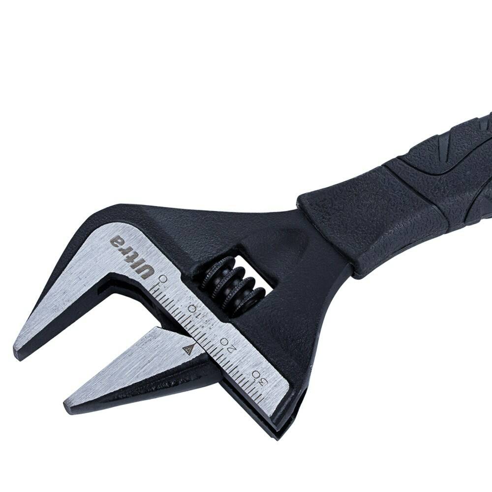 Ключ повністю виготовлений з хромованадіевой стали зі спеціальним фосфатним, захисним покриттям. Має ергономічну рукоятку, яка зручно лежить в руці і не ковзає під час роботи. Градуйована шкала, у вигляді 50-ти насічок і цифр, нанесена на голівку ключа. У ньому збільшено захоплення зіву до 55% в порівнянні зі звичайним розвідним ключем. Також, ключ має більш глибоку посадку, яка забезпечена подовженими губками на 30%. Розвідний ключ має тонку голівку, що в свою чергу дозволяє використовувати його в обмеженому просторі. Менший кут нахилу головки всього 15° забезпечує більшу швидкість в роботі, точність і дозволяє створювати більше зусилля.