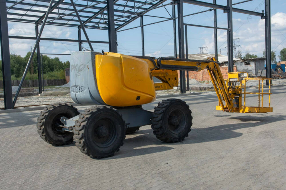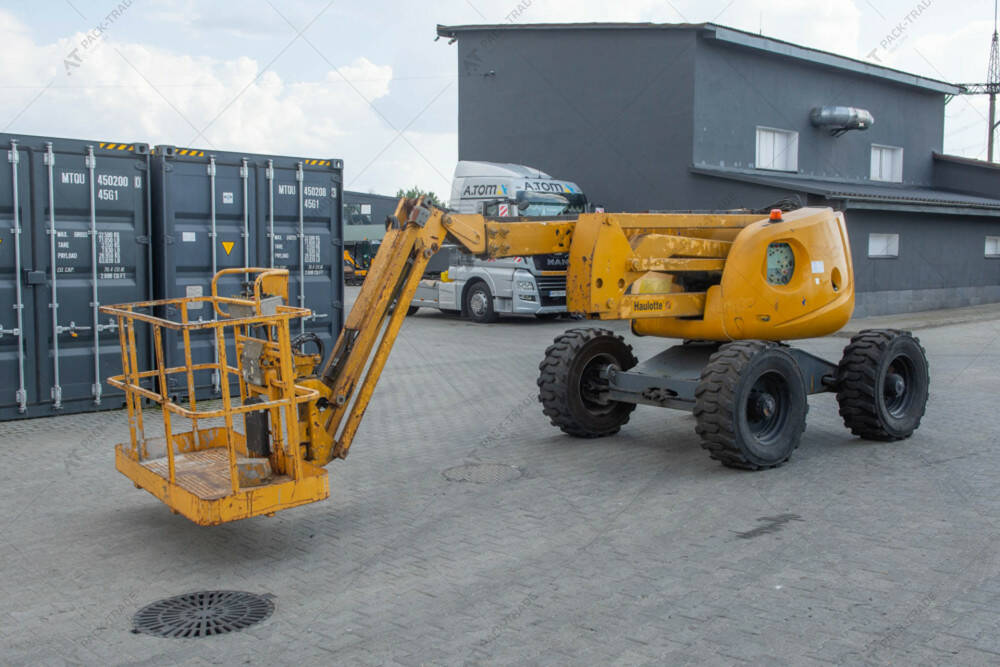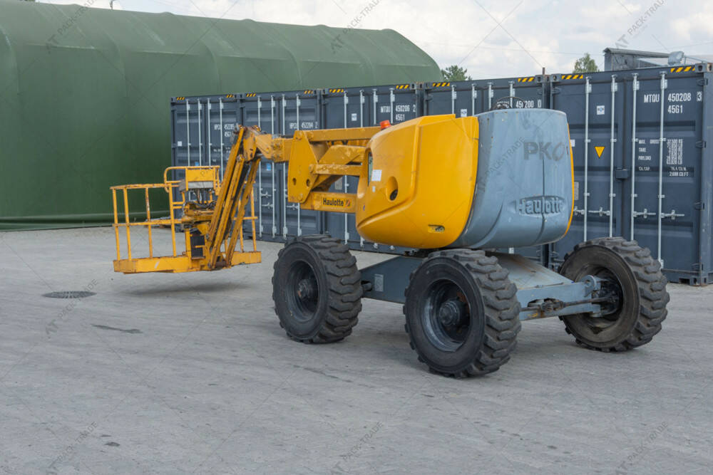 Колінчастий підіймач б/в Haulotte HA16PXNT, 2005 р/в. Вантажопідйомність – 230 кг. Висота підйому – 16 м. Розмір шин: 385/65R22,5.