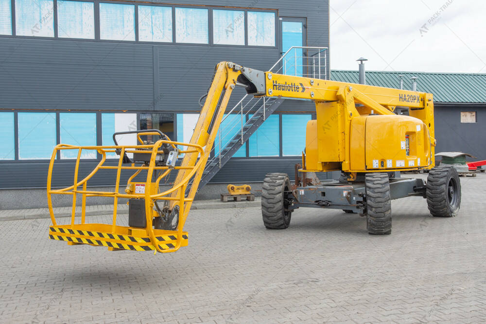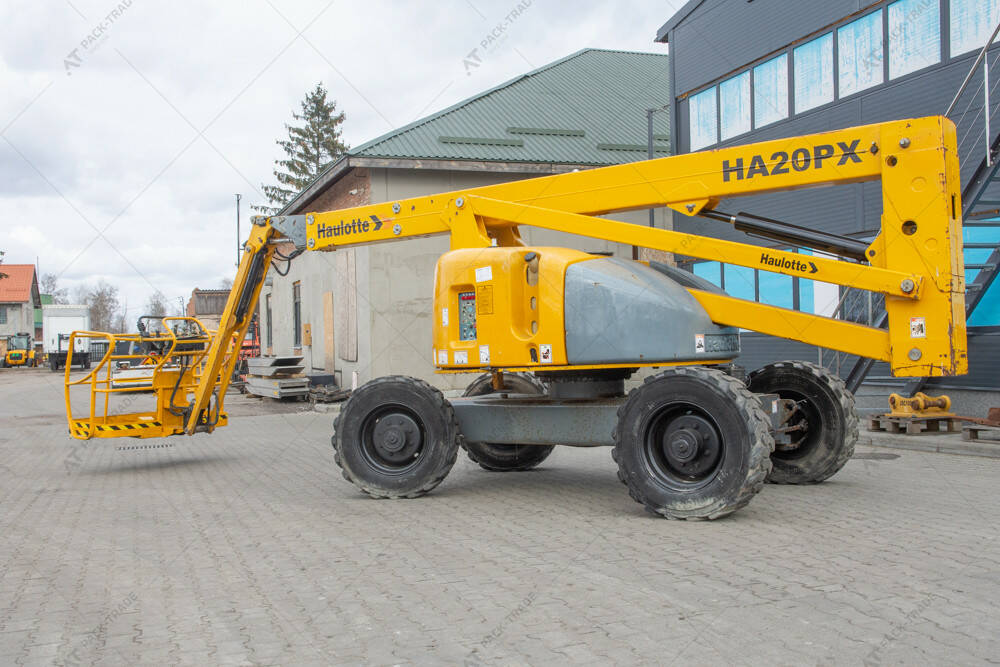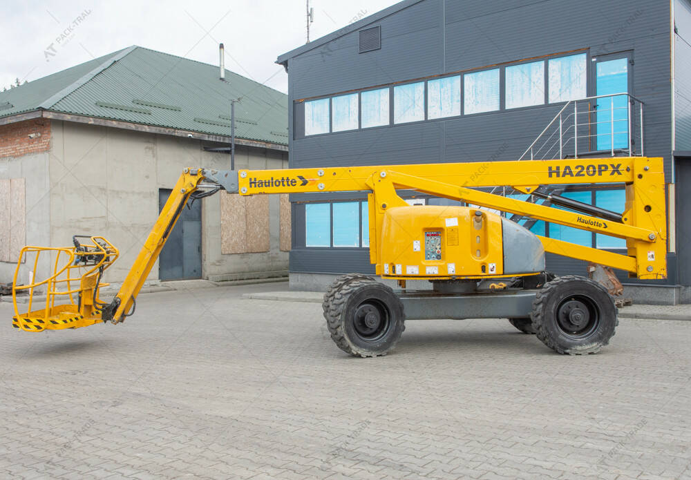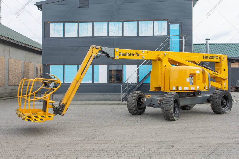 Колінчастий підіймач б/в Haulotte HA20PX, 2012 р/в, з напрацюванням 5470 м/год. Двигун — 38 кВт. Загальна висота — 2,6 м. Висота підйому — 20 м. Вантажопідйомність — 230 кг. Вага — 11710 кг. Розмір гусениці: 10-16,5.