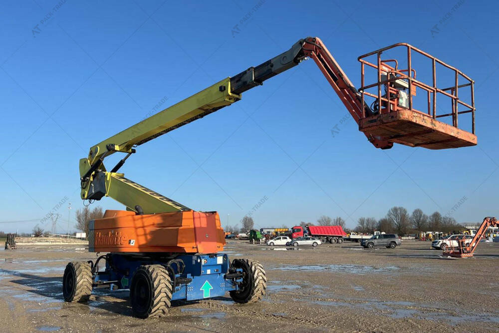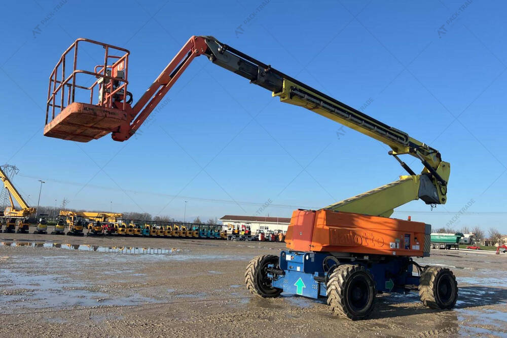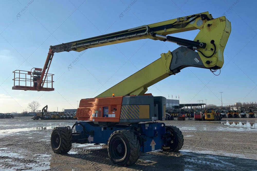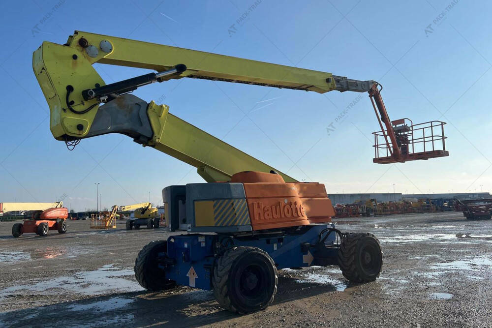 Колінчастий підіймач б/в Haulotte HA32PX, 2008 р/в, з напрацюванням 5492 м/год. . Двигун — 64 кВт. Загальна висота — 2,75 м. Висота підйому — 32 м. Вантажопідйомність — 250 кг. Вага — 21100 кг. Розмір гусениці: 445/65 D 22,5.