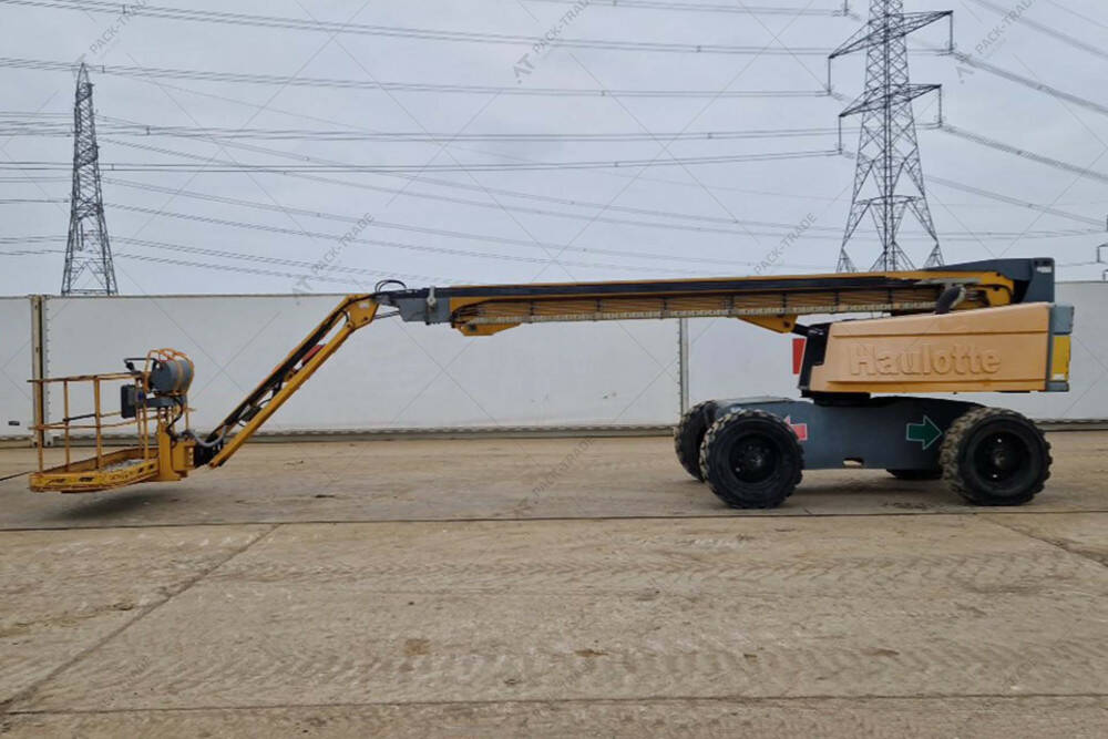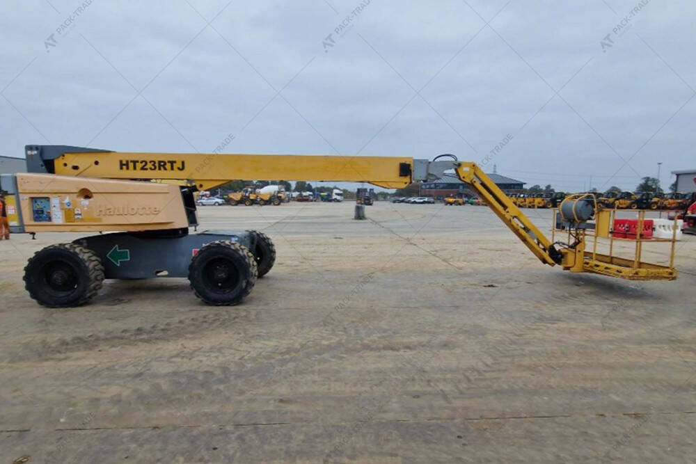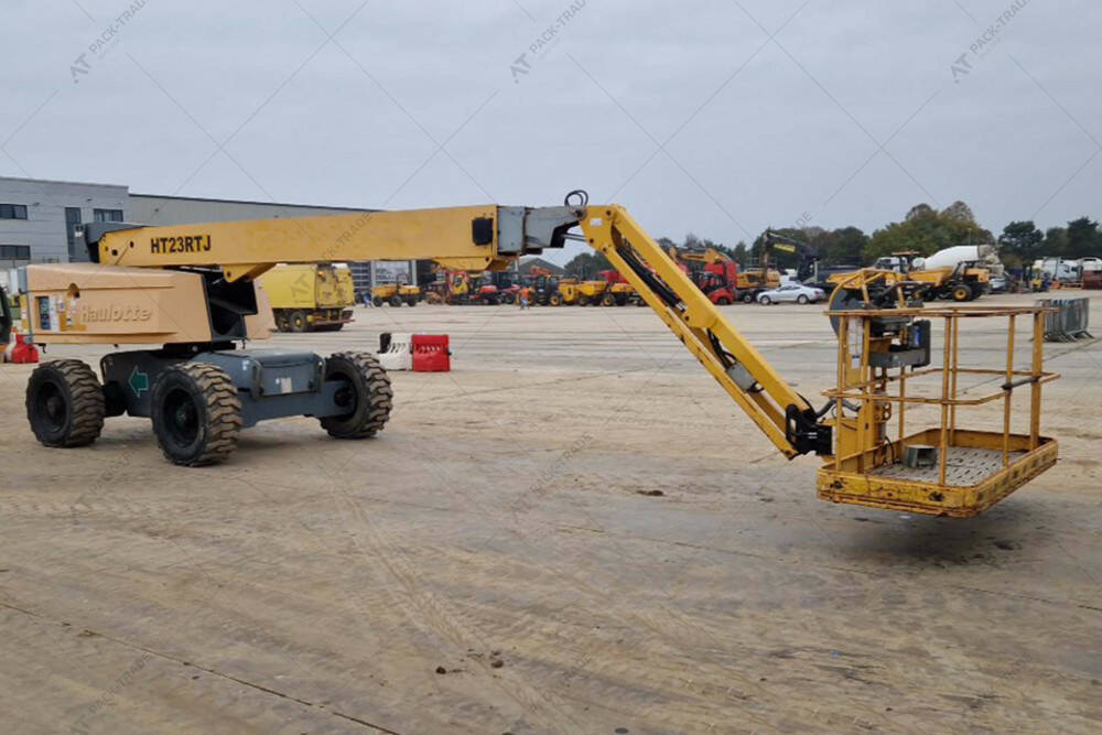 Колінчастий підіймач б/в Haulotte HT23RTJ, 2014 р/в. З напрацюванням 4019,3 м/г. Висота підйому — 23 м. Вантажопідйомність — 230 кг. Шини:385/65-22,5.