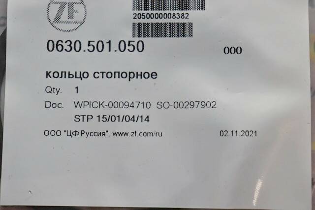 Кольцо стопорное ZF 0630.501.050