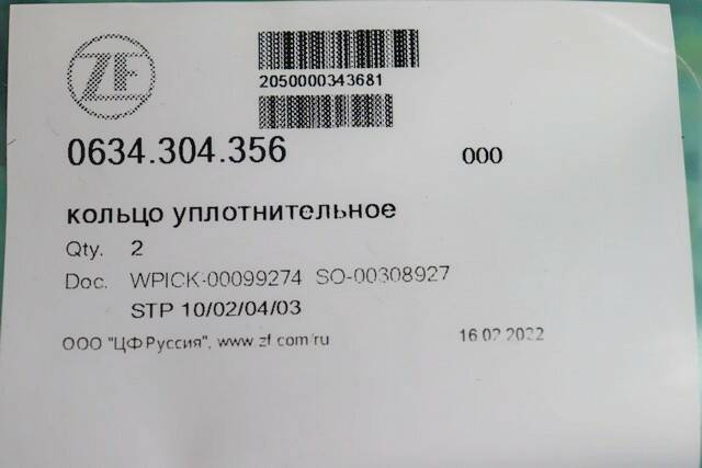 Кольцо уплотнительное ZF 0634.304.356