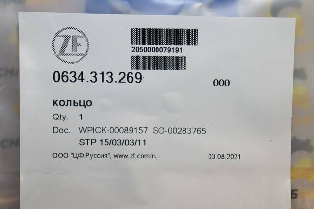 Кольцо уплотнительное ZF 0634.313.269