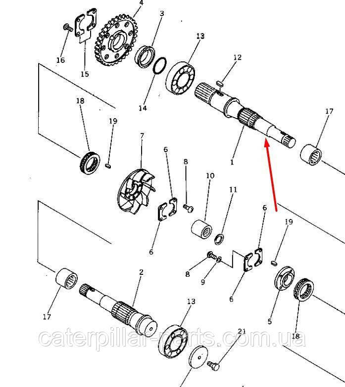 708-2L-32120 Вал приводу в аксіально-поршневий гідронасос екскаватора Komatsu PC300, PC300SC, PC340, PC350, PC380, PC400, PC400ST, PC450 (Комацу). Купити запчастини до спецтехніки Komatsu в Києві безпосередньо з нашого складу. Всі запчастини в мости та КПП ми поставляємо безпосередньо від виробника. Ремонт мостів та трансмісії проводить наш сервісний центр з ремонту спецтехніки та двигунів (Київ, Україна).