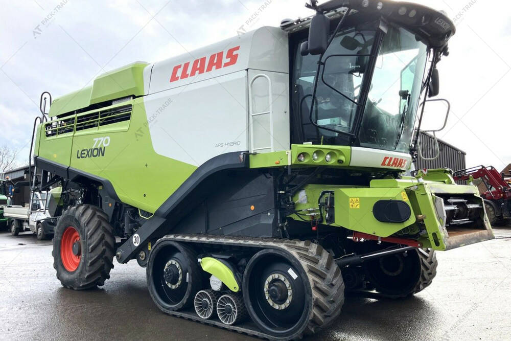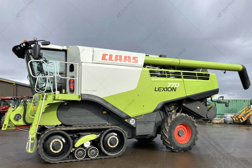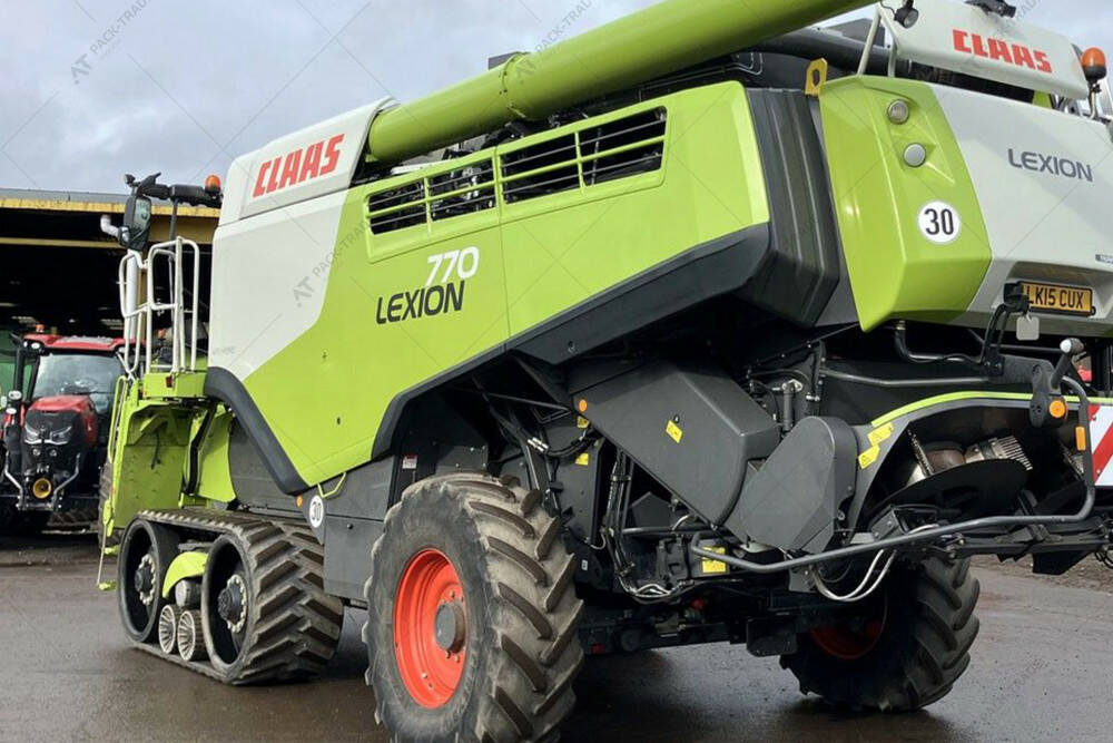 Комбайн CLAAS LEXION 770TT 2015 р. з жниваркою CLAAS Vario 1230 та причепом CLAAS TYP 521. Подрібнювач і розкидач. Напрацювання двигуна – 2785 м/год. Напрацювання комбайна – 2038 м/год.