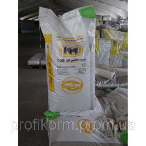 Інгредієнти: пшениця, ячмінь, макуха та шорти соєві та соняшникові, вапнякове борошно, глютен, вітамінно-мінеральна домішка (Вітамін А, Вітамін Д3, Вітамін Е, Вітамін В1, Вітамін В2, Вітамін В2, Вітамін В6, Вітамін В12, Вітамін Н, Вітамін К3, Ніацин (Р)), лізин метіонін, треонін, мікро та макро елементи (Са, P, Na, Mg, S, Fe, Zn, Cu, Co, J, Se), ароматизатор, мультиензимна композиція.