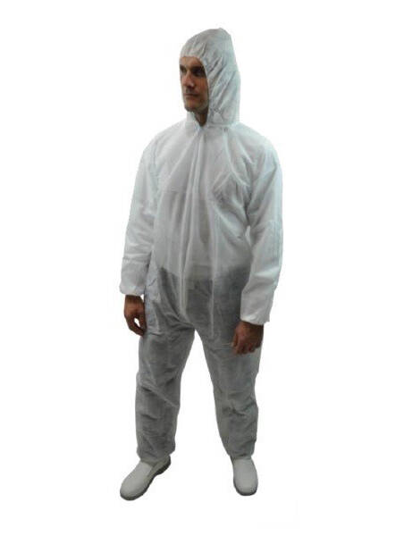 Комбінезон на блискавці нетканий з капюшоном - високотехнологічний захист шкіри і одягу людини від різних промислових і господарських забруднень. Комбінезон виготовлений з легкого, міцного нетканого матеріалу, що забезпечує хорошу повітропроникність. Нетоксичний, не викликає алергічних реакцій, антистатичний, із застібкою-блискавкою, завдяки чому комбінезон легко надівається, комфортний в носінні. Застосовується в медицині, фармацевтиці, харчовій промисловості, ветеринарії.