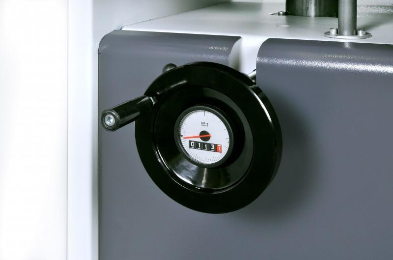 Все станки оснащены фронтальным столом с поддерживающей телескопической опорой и поперечной упорной линейкой с 2-мя откидными упорами. Это позволяет обрабатывать на станке листовые материалы, также возможно увеличение длинны каретки до 2050 мм.