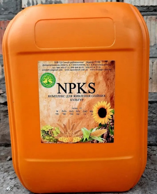Покращений комплекс для живлення олійних культур - "NPKS" з вмістом азоту, фосфору, калію, сірки, марганцю та цинку, що сприяє підвищенню врожайності і якісних показників зерна.