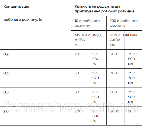 ємностях шляхом додавання до води відповідних кількостей засобу