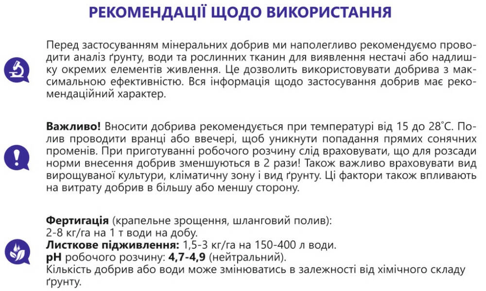 • Полная растворимость в холодной воде, что актуально для полевых условий.