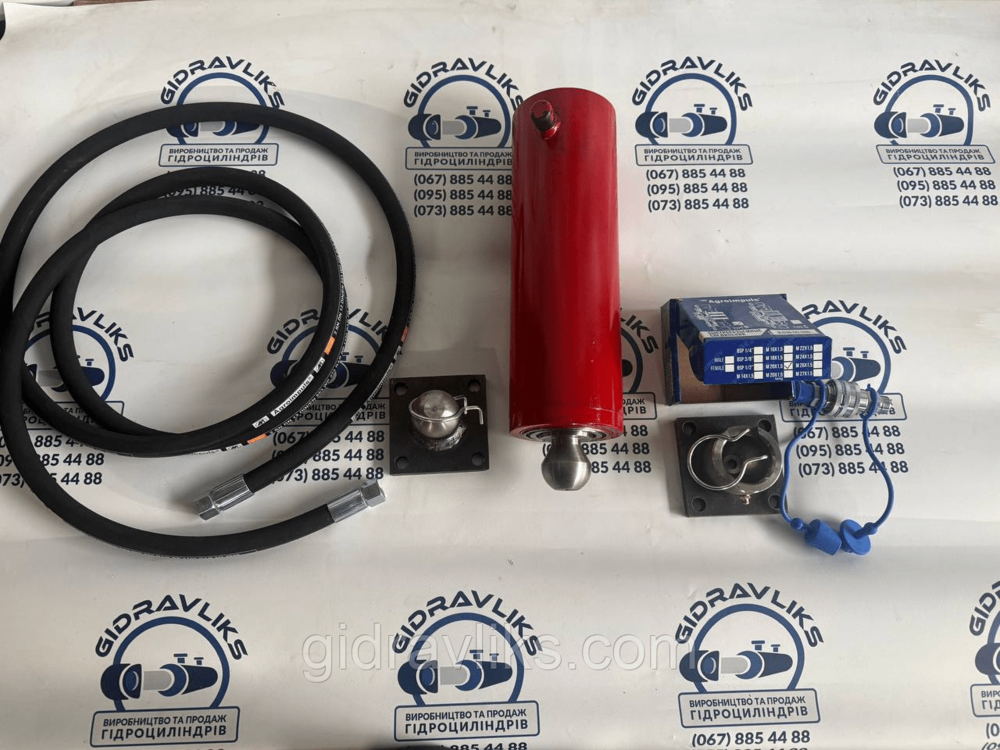 Готовий монтажний комплект гідропідйому призначений для встановлення на причепи та самосвальні платформи вантажопідйомністю до 5 тонн. Комплект сформований як узгоджений набір гідравлічних компонентів, що забезпечує коректну роботу підйомного механізму від стандартного гідровиходу трактора або іншого джерела гідроживлення.