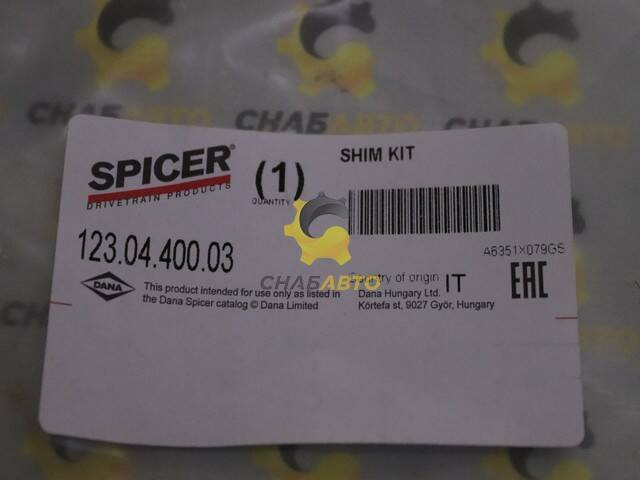 Комплект шайб DANA SPICER 123.04.400.03