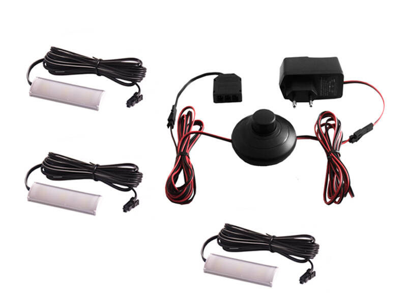 Комплект світильників світлодіодних з ножним вимикачем накладних для підсвітки меблевих полиць 3шт 220V біле світло чорний провід LEDUA