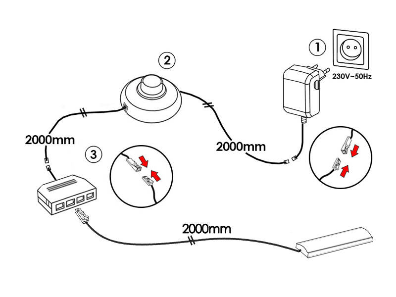 Комплект світильників світлодіодних з ножним вимикачем накладних для підсвітки меблевих полиць 4шт 220V біле світло чорний провід LEDUA