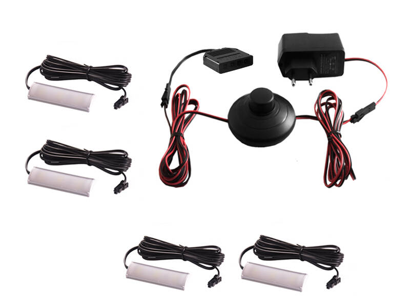 Комплект світлодіодних світильників LEDUA (4 шт.) з білим світлом і чорним проводом – це чудове рішення для підсвічування меблевих полиць, робочих зон, кухонних гарнітурів, вітрин і декоративних елементів інтер’єру. Завдяки ножному вимикачу управління освітленням стає максимально зручним, дозволяючи легко вмикати та вимикати світильники без потреби вільних рук.
