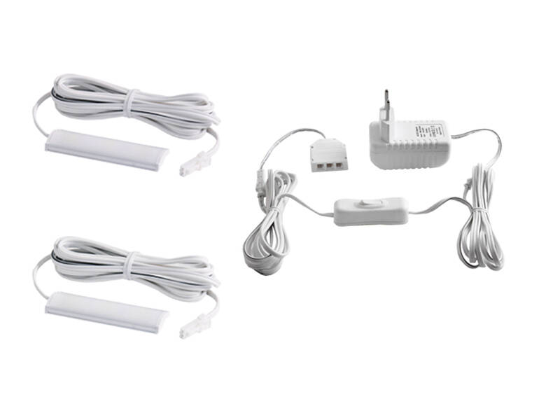 Цей комплект світильників з ручним вимикачем ідеально підходить для використання як підсвітка для меблів, вітрин або декоративних елементів. Біле світло забезпечує чітке і яскраве освітлення, яке додає елегантності та візуальної привабливості інтер'єру. Білий провід робить світильники непомітними на фоні стін або меблів, що дозволяє зберегти гармонійний вигляд інтер'єру.