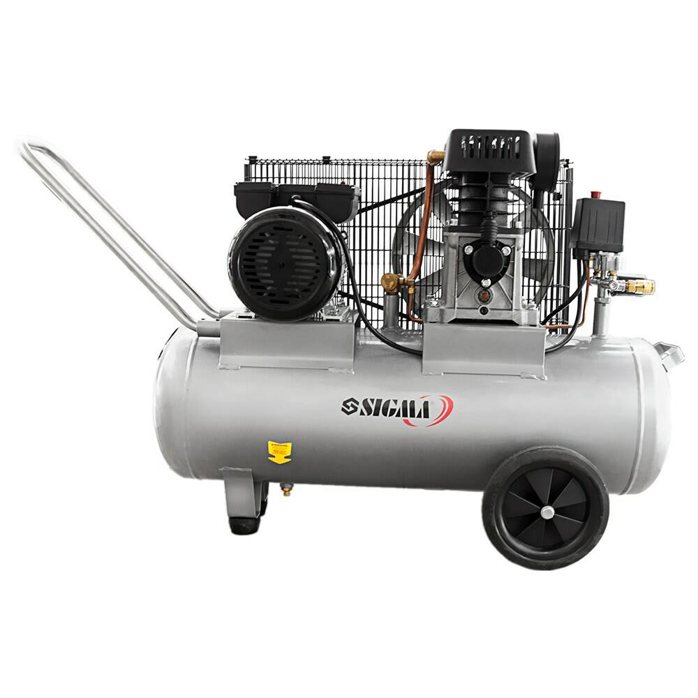 Модель компресора Sigma 7044121 має потужність 2.5 кВт і великою продуктивністю 335 л/хв з високим тиском (до 10 бар). Дана модель спроектована для професійного застосування. Застосовується в будівництві і невеликому виробництві, на СТО і майстерень. Ресивер місткістю 50 л дозволяє накопичувати більший обсяг стисненого повітря, що значно зменшує частоту включення двигуна, знижуючи навантаження на компресор і, відповідно, збільшує термін його служби.