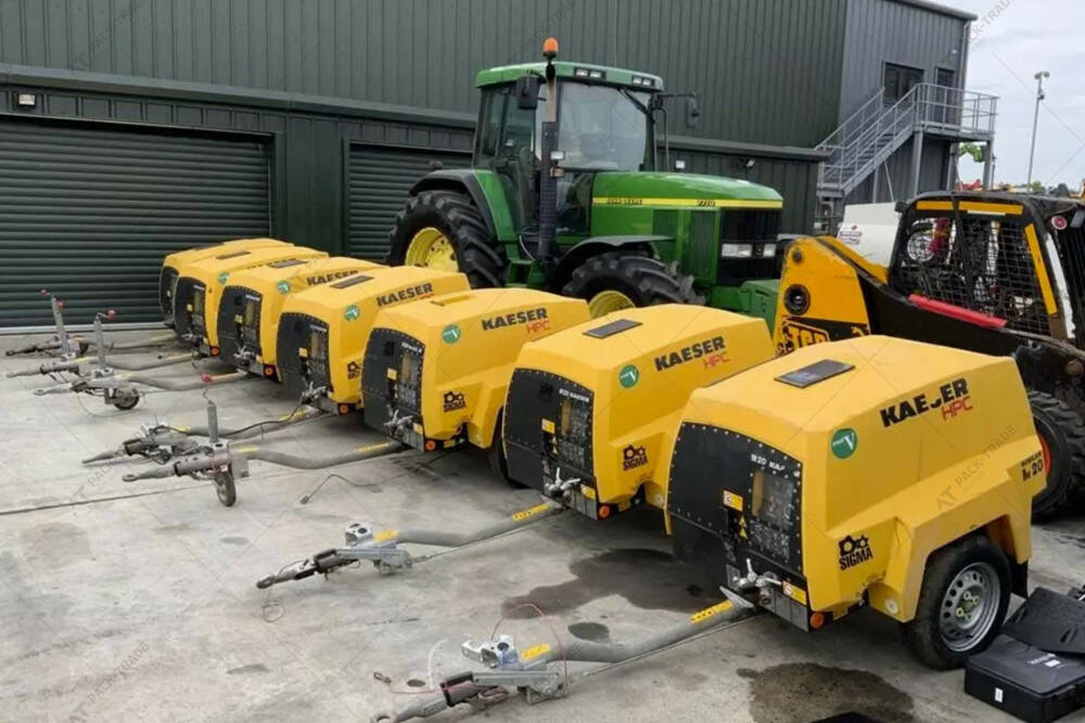 Компресор б/в Kaeser M20PE, 2022 р/в, з напрацюванням 207 м/год. Двигун – Kubota Stage V. Габаритна Ширина-1,2 м. Висота-1,2 м. Довжина-3,0 м. Шини: 145/80 R 13. Тиск 7 BAR.