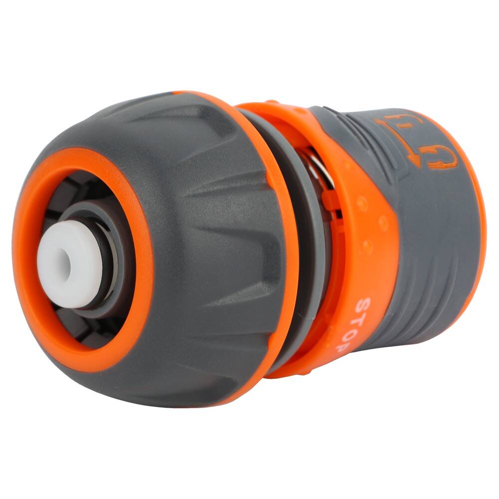 Конектор 1/2" швидкознімний для шланга 3/4" аквастоп з замком (ABS+TPR) FLORA (5015454) призначений для швидкого і легкого з'єднання зі шлангом. Обладнаний системою аквастоп, що запобігає протоці води при зміні насадок і спеціальним замком (функція QUICK LOCK) - блокування від випадкового від'єднання.