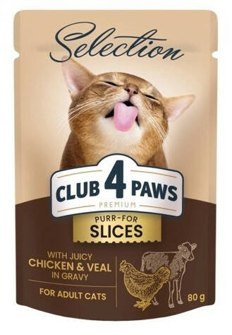 Club 4 Paws Premium Plus Selection з куркою і телятиною для дорослих котів - це апетитний преміум-раціон у соусі, що володіє всіма необхідними якостями для здорового і збалансованого харчування вашого улюбленця.