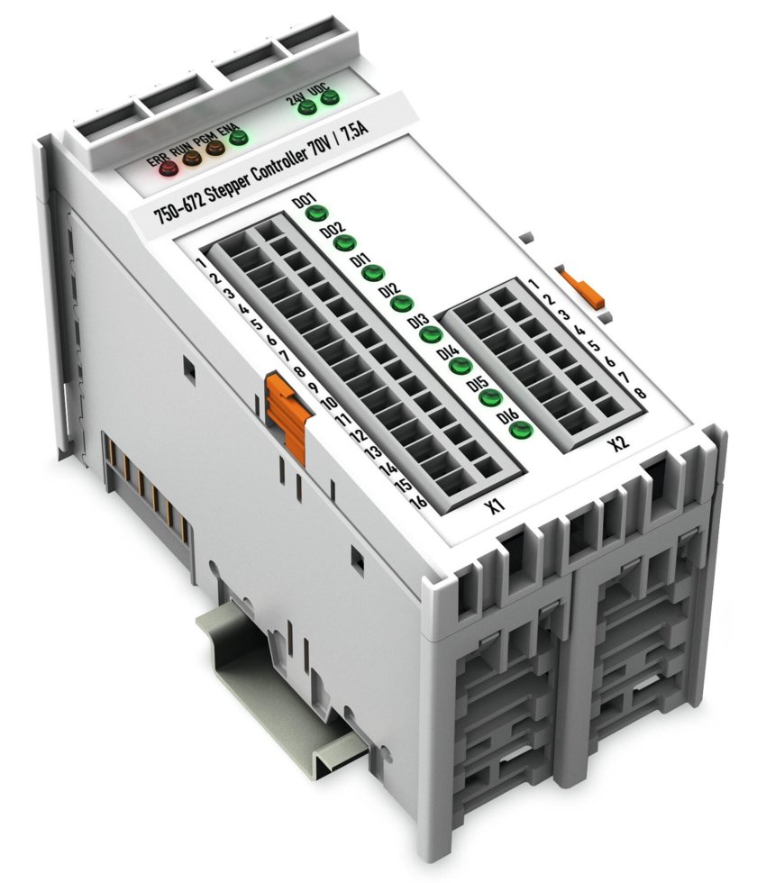 Є інтелектуальним контроллером крокового приводу зі встановленим силовим приводом, призначеним для управління 2-фазними кроковими двигунами до 70 В / 7,5 А. 64-кратне масштабування мікрокоманд перешкоджає втраті кроків із-за резонансу у фазі прискорення і перешкоджає надмірному зносу механічних частин. Регульовані обмеження струму при останові, прискоренні і постійній швидкості допомагають мінімізувати розсіяння потужності двигуна. шість входів, що конфігуруються, для пуску/останову, кінцевого обмеження, початкової установки, поштовхового/покрокового переміщення і т.п. можуть безпосередньо оброблятися внутрішнім програмним забезпеченням без всякої затримки. Два виходи можуть бути пов'язані з внутрішніми функціями або ж використовуватися вільно. Завдяки гнучким можливостям, таким як позиціонування з різним лінійним прискоренням, використання таблиць команд, функція розподільного валу, автоматичний опорний сигнал, і іншим керованим подіями характеристикам модуль підходить для широкого діапазону сфер застосування. Інтерфейс програмування однаковий для усіх модулів контроллерів крокових приводів WAGO.