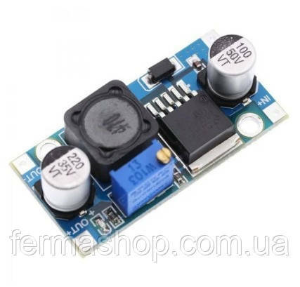 DC-DC імпульсний конвертор понижувальний на базі LM2596. Корисний для передачі живлення на далекі відстані (вища напруга - менші втрати). Якщо Ви вже маєте блок живлення, то не потрібно купувати новий з іншою напругою, а просто додати конвертор.