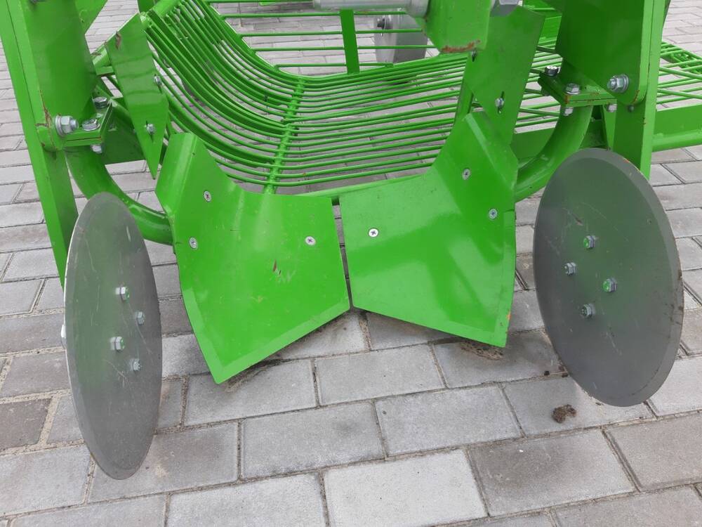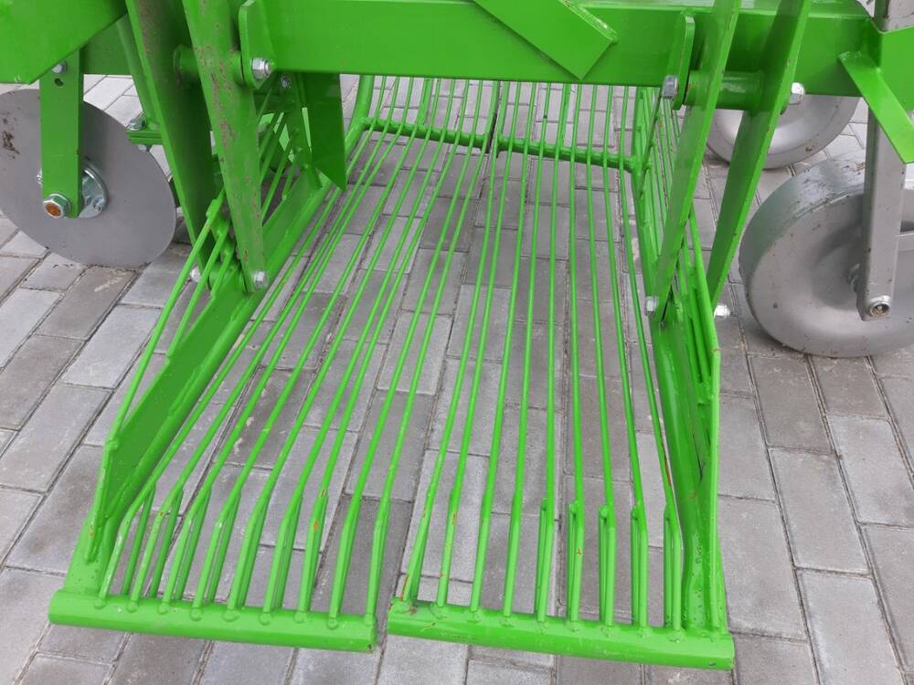 Два дискових ножа відрізають пагони, що стелиться, подвійний сошник підрізає гряди і переносить їх на вібраційний відсіювач. Два відсіювачі, що рухаються в протилежних напрямках, видаляють землю і укладають бульби у вузький ряд, набік, уздовж напрямку руху машини. Така установка робочих елементів забезпечує плавність роботи машини і полегшує збирання бульб. Слід наголосити, що конструкція копалки характеризується дуже низьким показником пошкодження бульб.