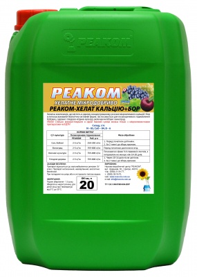 РЕАКОМ – ХЕЛАТ КАЛЬЦІЮ+БОР застосовується при боротьбі з дефіцитом кальцію. Ознаки дефіциту кальцію в овочевих культур найбільш помітні на молодих листках, які стають хлоротичними (створення світло - жовтих плям). Старі листя навпаки - набувають темно - зелене забарвлення і збільшуються в розмірах.
