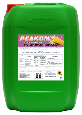 РЕАКОМ-ПЛЮС-ЦИНКО ФОС - МІКРОДОБРИВО РЕАКОМ для підживлення сільськогосподарських культур, препарат з підвищеним вмістом фосфору, служить для одночасного некореневого живлення рослин в періоди активного росту, біологічно активними формами цинку і фосфору, заліза, міді.
