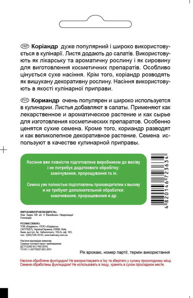 Коріандр Слоуболт, 2 г, Садиба Центр