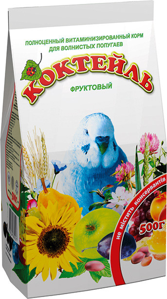 Корм для птиці Коктейль "Фруктовий" корм для хвилястих папуг 500 г, Природа