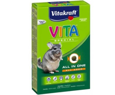 Корм Vitakraft VITA Reg - це повноцінний щоденний раціон для дорослих шиншил віком до 10 років. Складається з корисних для гризунів насіння та овочів. Містить велику кількість сіна волокон для хорошого травлення. Такий раціон повністю відповідає фізіологічним потребам шиншил, адже він повністю заснований на продуктах, які гризуни їдять у природному середовищі.