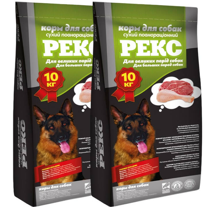 Корм виготовлено на найсучаснішому зарубіжному обладнанні, з використанням високоякісної сертифікованої сировини, ухвалений провідними ветеринарними фахівцями. «Корм Рекс» є улюбленим кормом для собак, тому що має неперевершений привабливий для тварин аромат без застосування штучних ароматизаторів. В його складі міститься велика кількість протеїну, вітамінів та мікроелементів для доброго засвоєння, активізації обміну речовин, стану шкіри та волосяного покриву, кісток, загального здоров’я тварин.