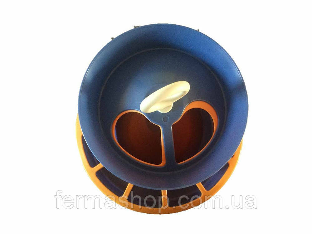 Оснащена крышкой-клапаном в виде воронки для удобства загрузки корма. Устанавливается на пол или подвешивается .
