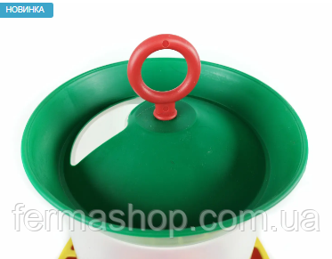 Оснащена крышкой-клапаном в виде воронки для удобства загрузки корма. Устанавливается на пол или подвешивается .